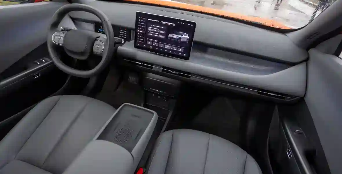 Но главное, что в салоне при этом уютно — и без всяких ухищрений вроде дополнительной «печки» (такой опции пока и не предлагают). По крайней мере, при температурах до −5°С тепло поступает быстро и распределяется равномерно. А вот при пятнадцати градусах мороза уже есть нюансы — электрические тэны просто не успевают хорошо обработать забортный воздух, и из дефлекторов он выходит едва тёплым. Ехать можно, но EVOLUTE внутри будет прогреваться дольше, а вдобавок — неравномерно: правой ноге комфортно, а левой холодно, да и шапку снимать не хочется.