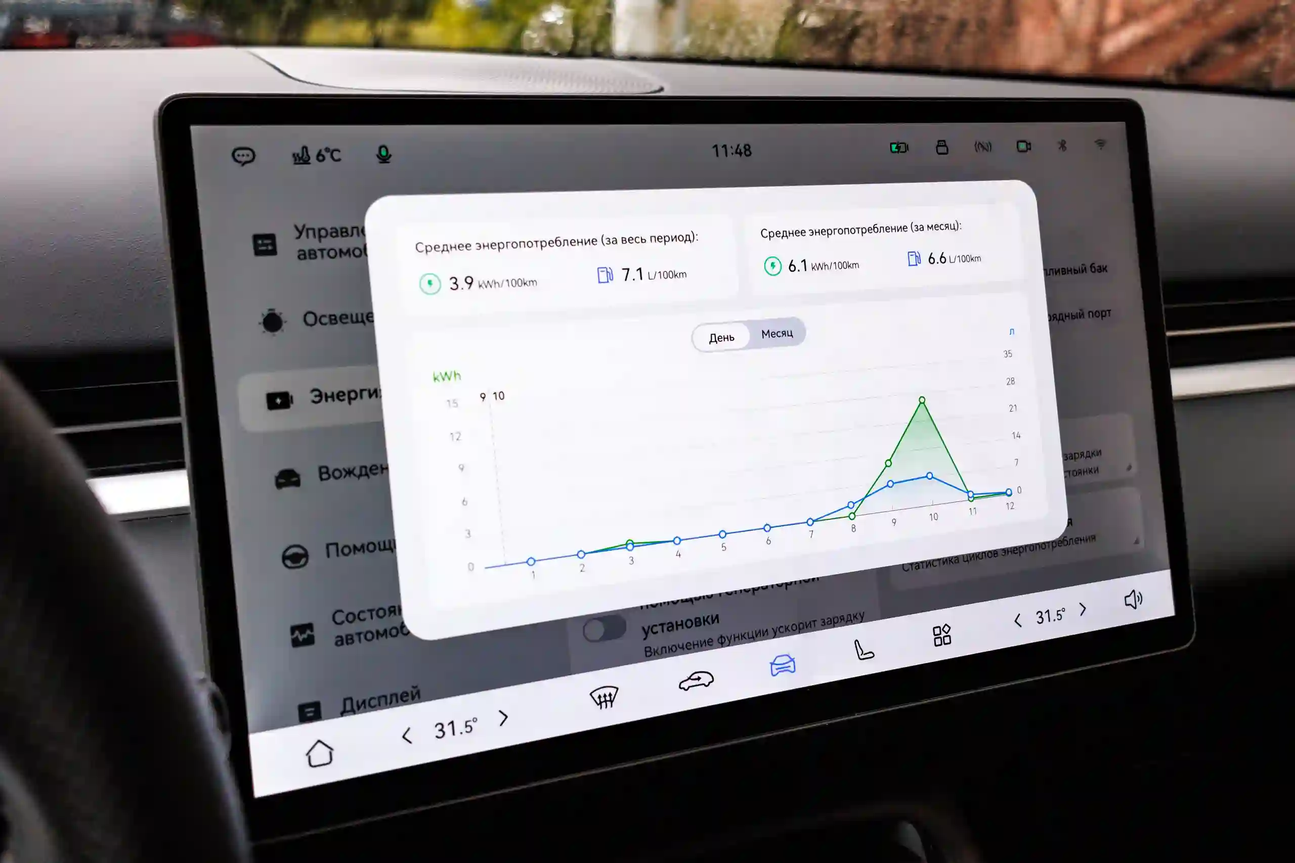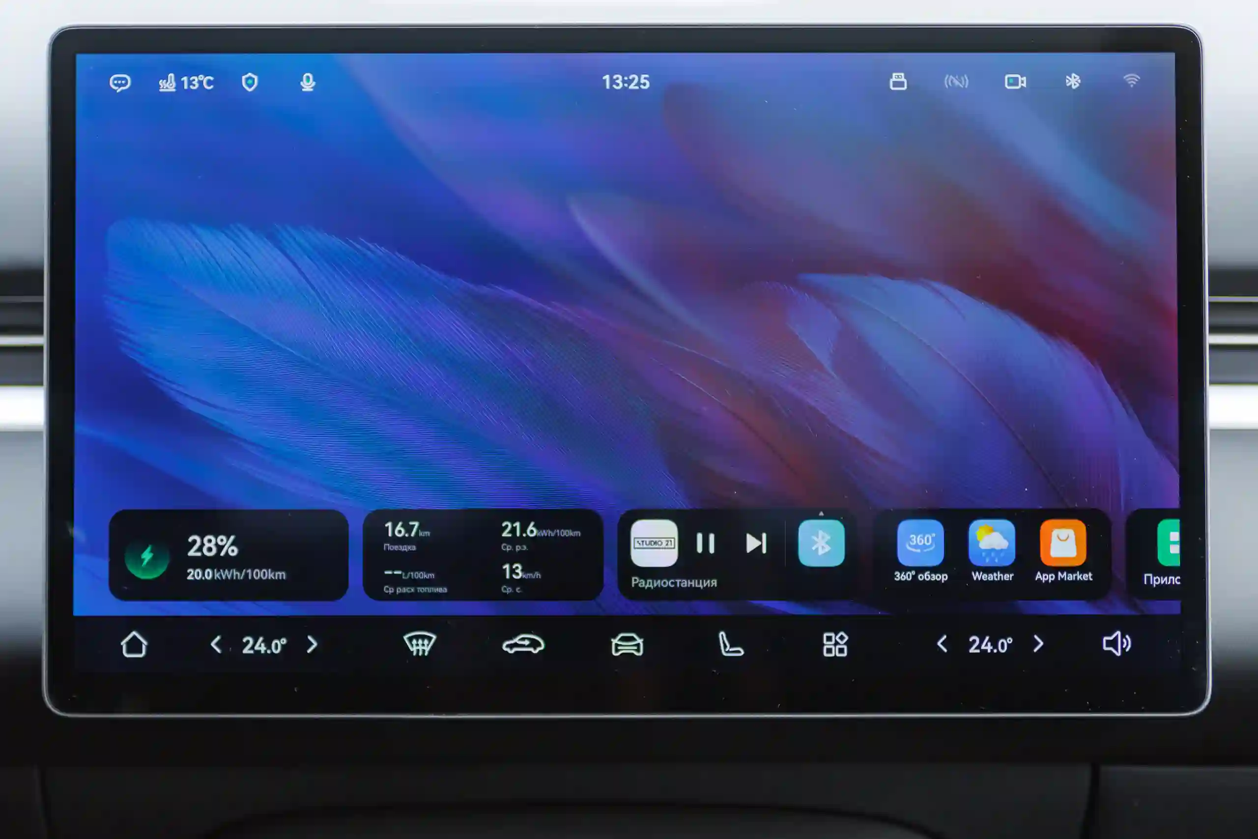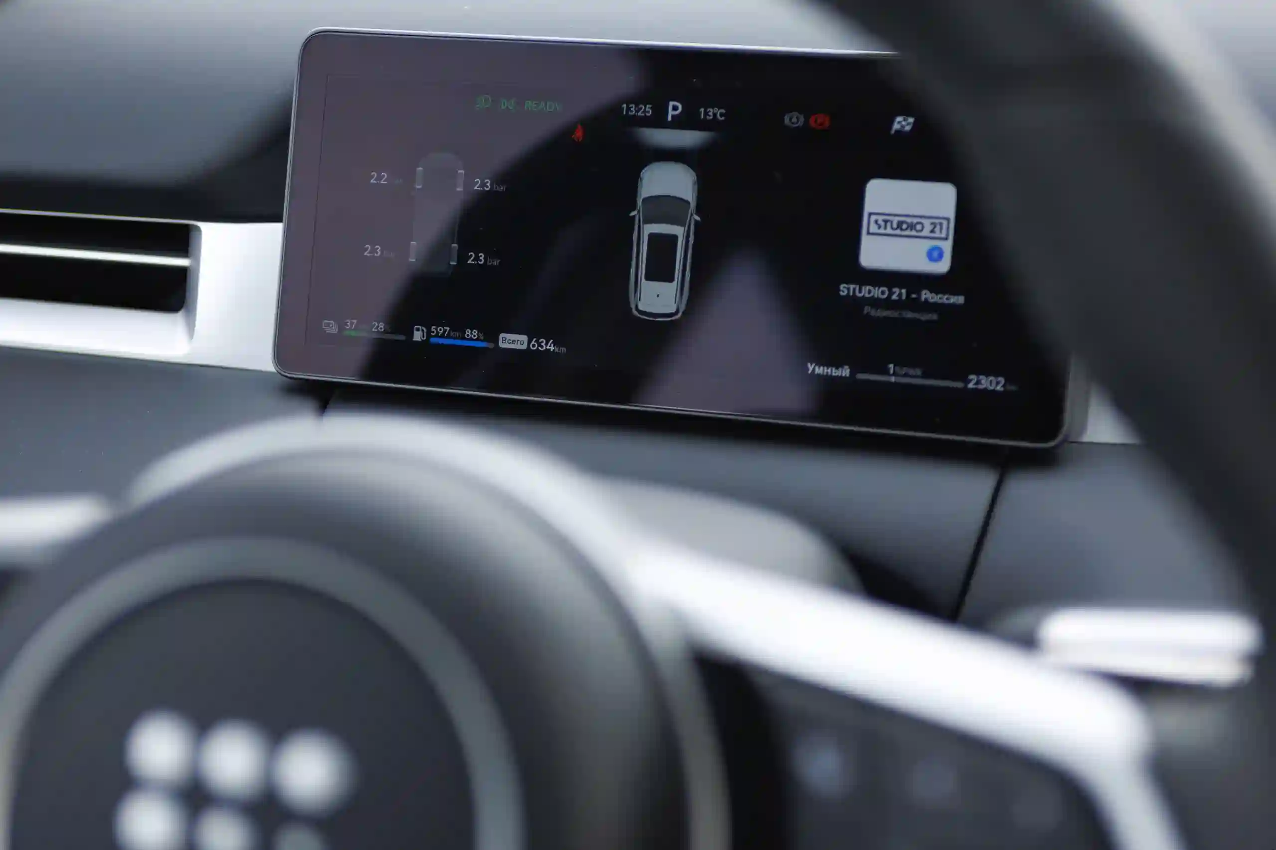 Длина окружности МКАДа — 109 км. Такой же запас хода на электротяге после полной зарядки батареи отображал и EVOLUTE i‑SPACE прошлого модельного года, хотя его практический максимум был 75-80 км. Чтобы проехать столько в чистом режиме, требовалось вести машину очень плавно и бережно. Но при снижении уровня заряда до 25% автомобиль всё равно сам выходил из режима EV и подключал генерацию.